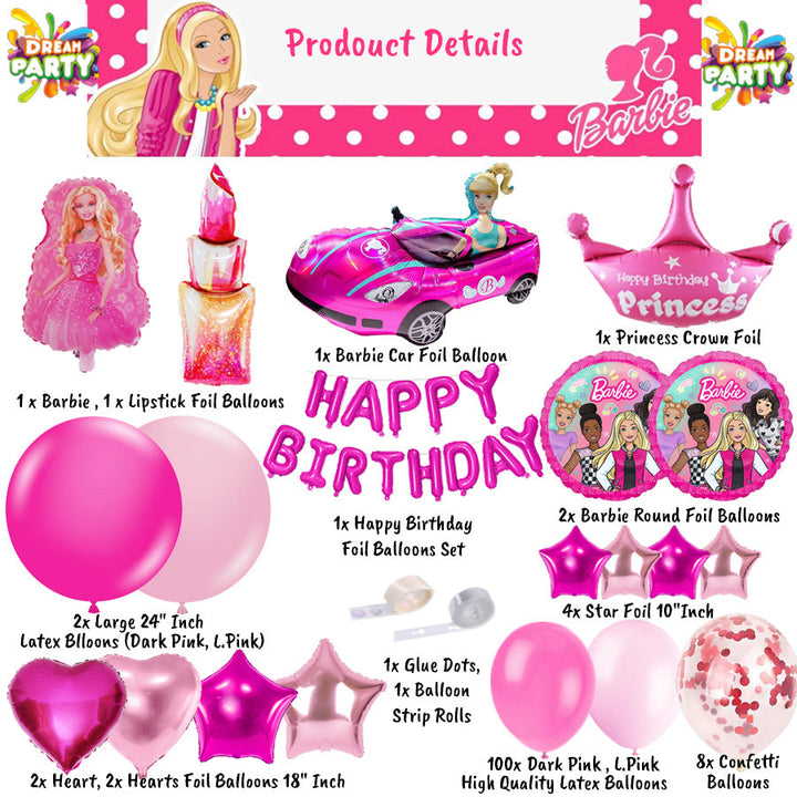 Barbie Theme Birthday Party Decorations Full Set of Balloons & Items