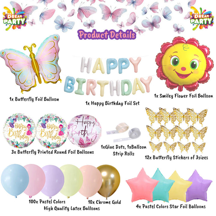 Butterfly Theme Birthday Decorations Full Set of Balloons & Items