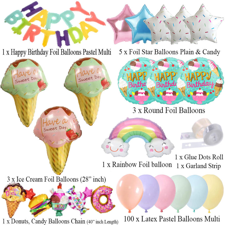 Ice Cream Theme Birthday Party Decorations Full Set of Balloons & Items