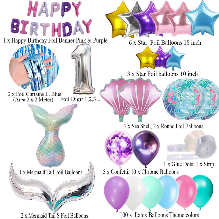 Mermaid Theme Birthday Party Decorations Full Set of Balloons & Items