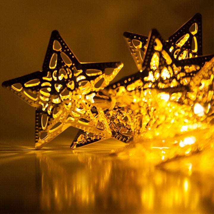 Metal Stars Shape Golden Led Light 9' Feet - 220 V Plug operated