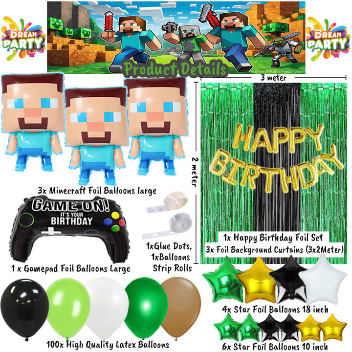 Minecraft Theme Birthday Party Decorations Full Set of Balloons & Items