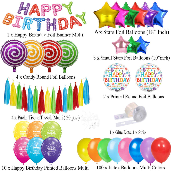 Multi Color Theme Birthday Party Decorations Full Set of Balloons & Items